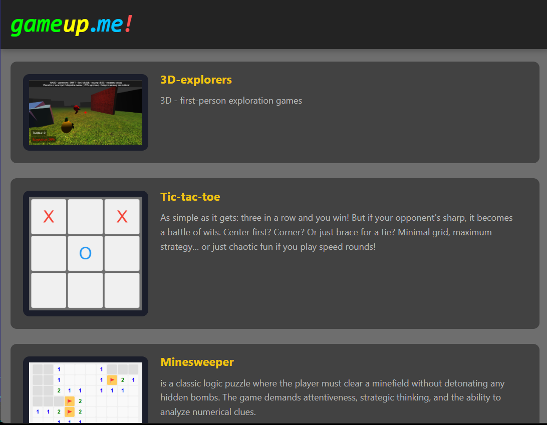 В этом проекте я изучал возможности AI к написанию игр, в основном, на JavaScript.
