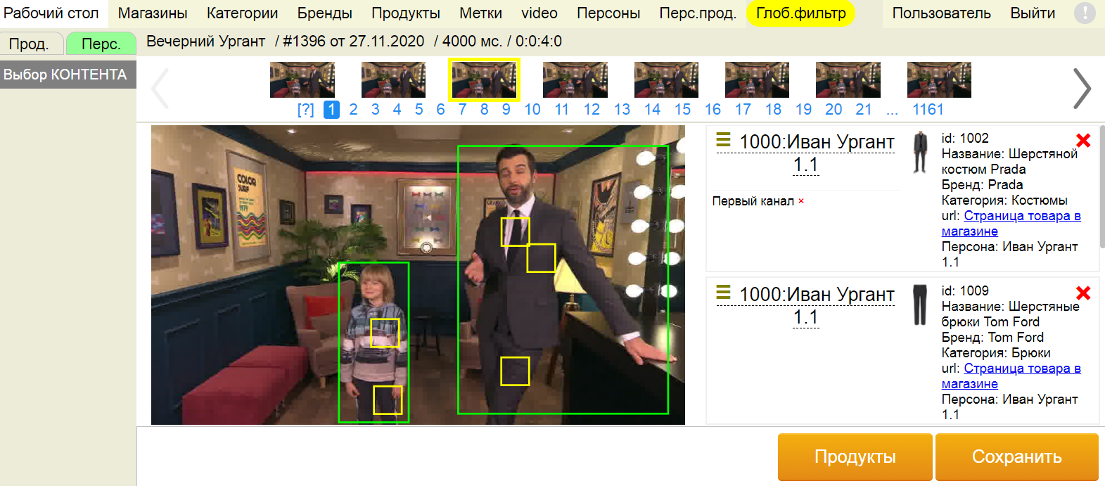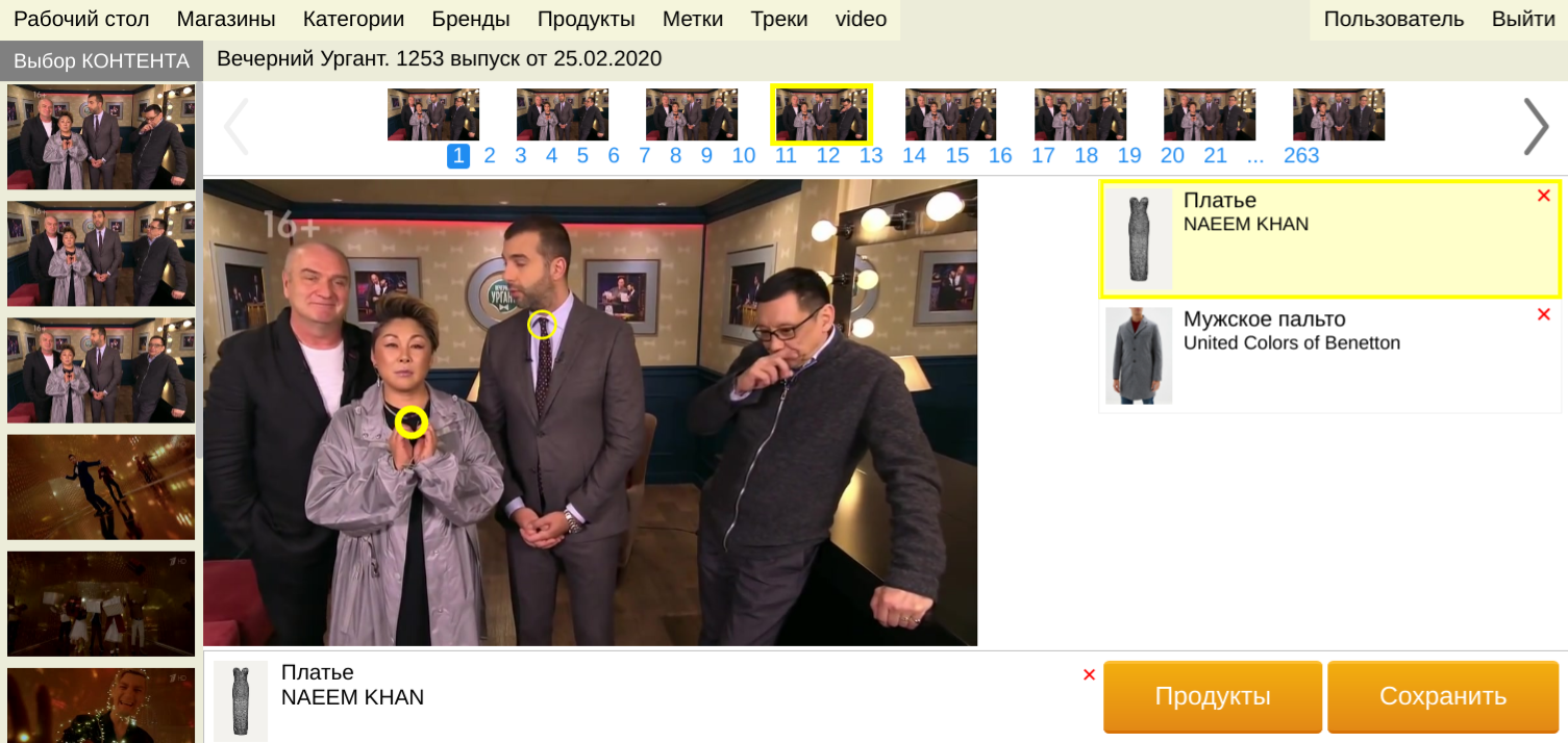На первом скрине с темным мини-сайтом в крайнем левом - исходном - изображении как раз и показан момент, когда на нём моим функционалом светлым фоном выделены очертания интересующего костюма. А правее - результаты, присланные сервером. (Мой тут только frontend.)