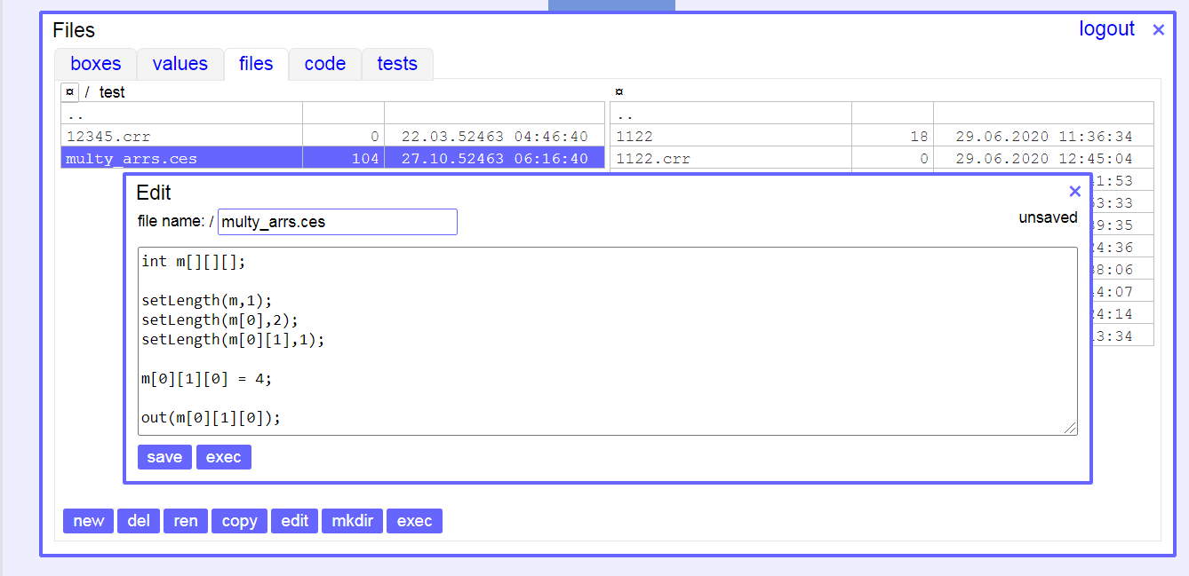 Данный тестовый сайт позволяет писать или загружать тесты, написанные на их языке,